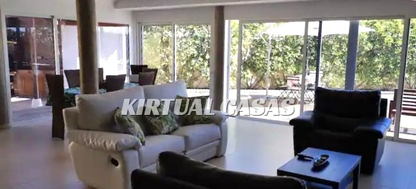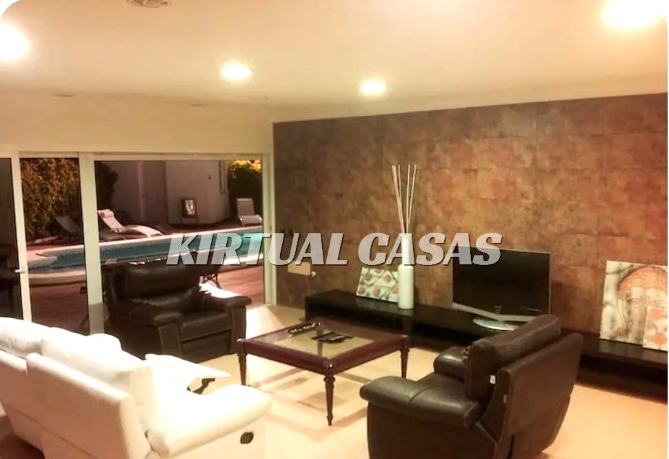 La planta principal acoge un salón principal con vistas directas al jardín y la piscina, creando un ambiente abierto, relajado y lleno de luz natural.