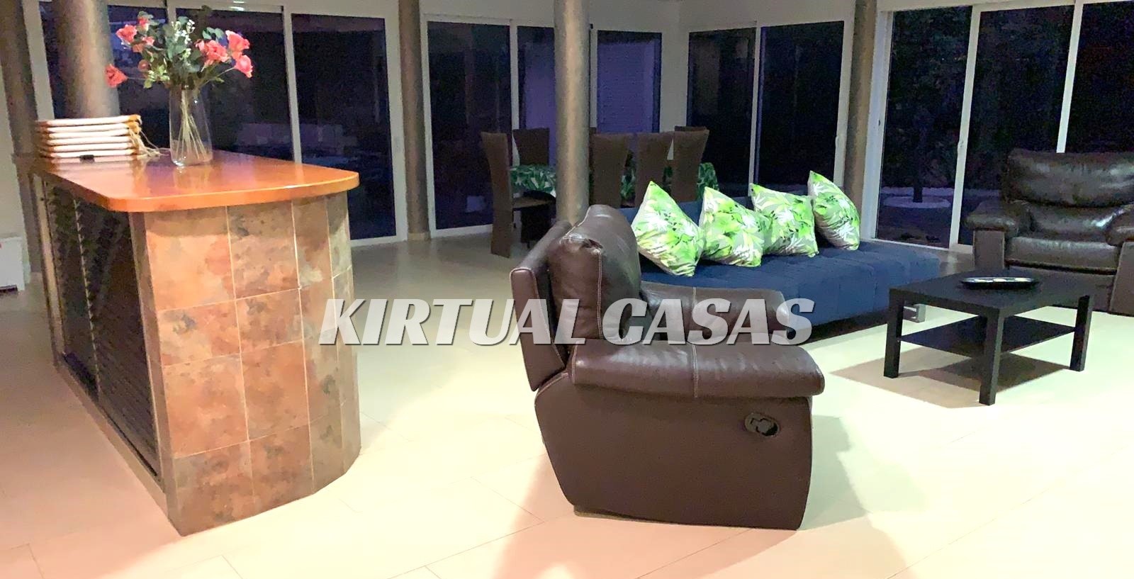 La cocina, de estilo americano, destaca por su diseño moderno y funcional, con una elegante barra perfecta para compartir momentos en familia o con amigos. A ambos lados, se encuentran una despensa de gran capacidad y una zona de lavandería que aportan orden y funcionalidad.